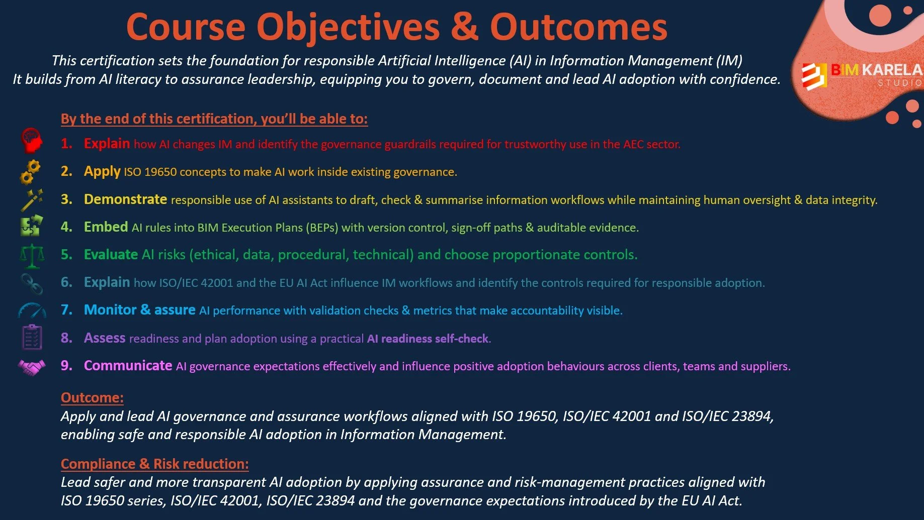 Unlike many providers that simply repackage standards & theory, BIM KARELA delivers training built on decade of hands on global Information Management experience. Certifications are designed by a founder herself with academic excellence in ‘BSc Building Services Engineering’ and ‘MSc Advanced Construction Technology & BIM’ and every CPD bridges standards with practice. That means learners don’t just gain theory, but walk away with clarity, confidence & skills they can apply the very next day.